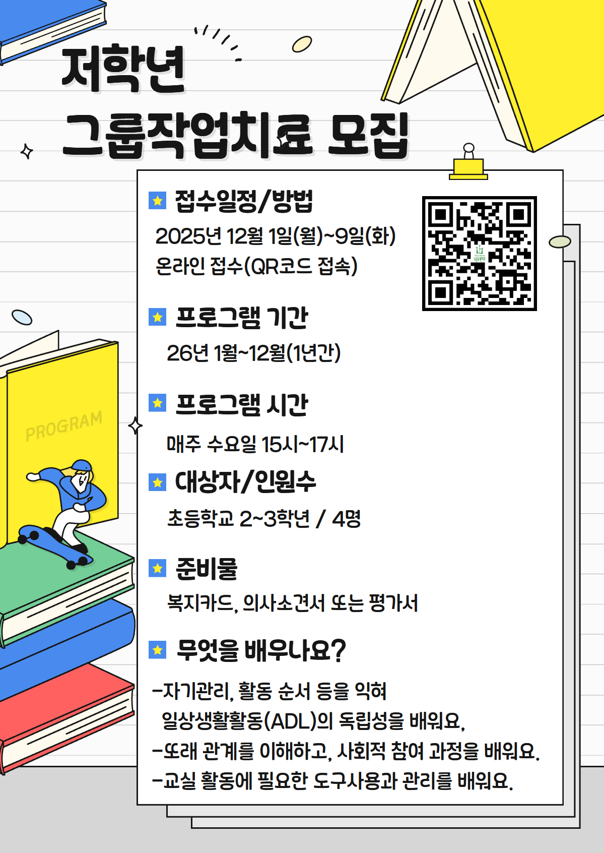 아동발달팀 2026 저학년 그룹작업치료 이용 아동 모집