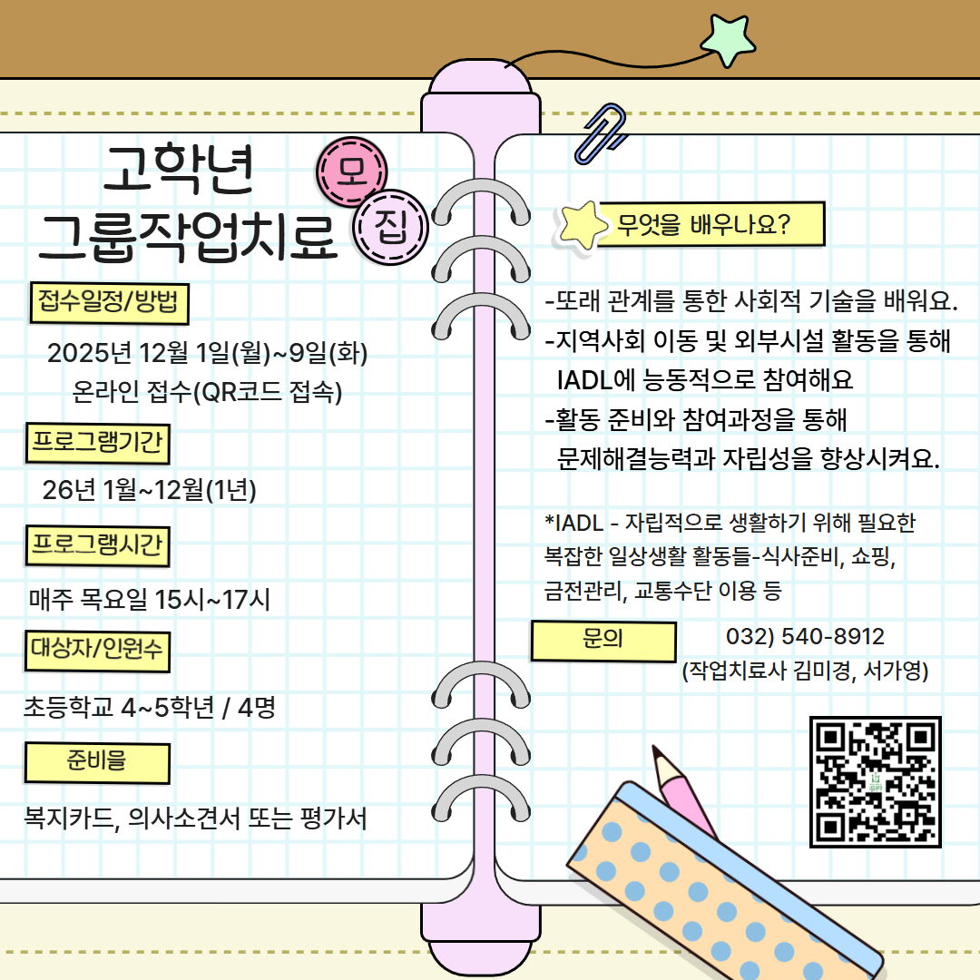 - 다음글2026 저학년 그룹작업치료 이용 아동 모집 25.11.24