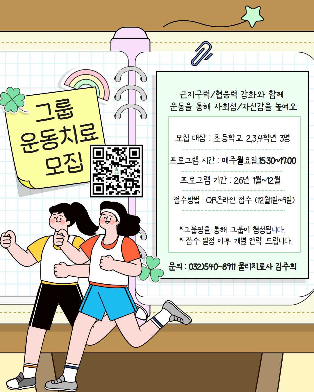 아동발달팀 2026 그룹운동치료(슬기로운 운동생활) 이용 아동 모집