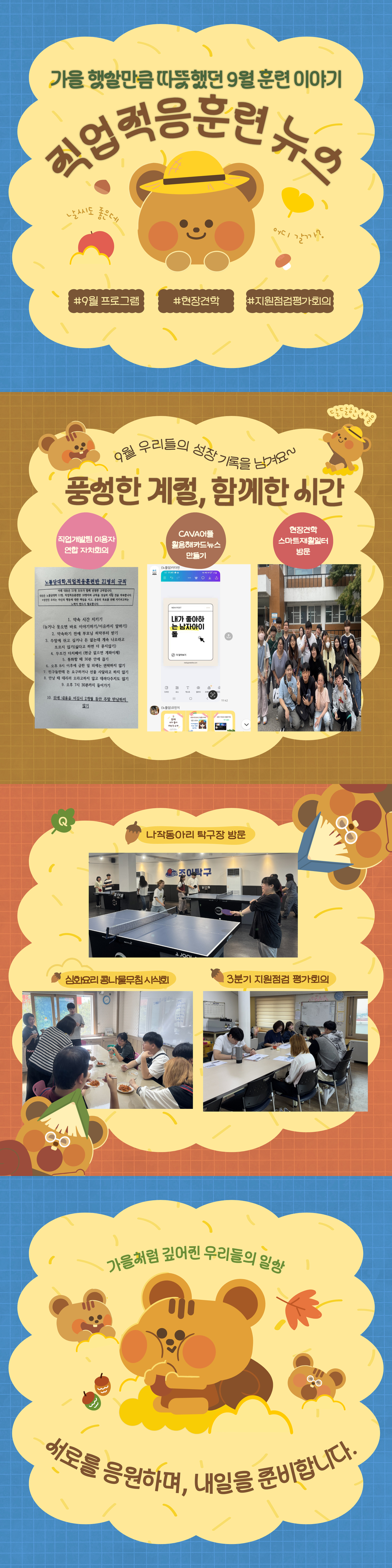 새로운 시도, 진지한 고민, 의미 있는 변화들이 가득했던 9월의 직업적응훈련 이야기를 전해드립니다!